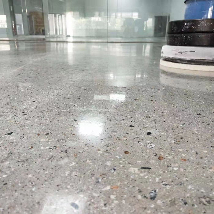 3.精細(xì)打磨 ,用混凝土樹脂片從300#500#1000#1500#2000#依次將地面水磨平整,清洗待干透;