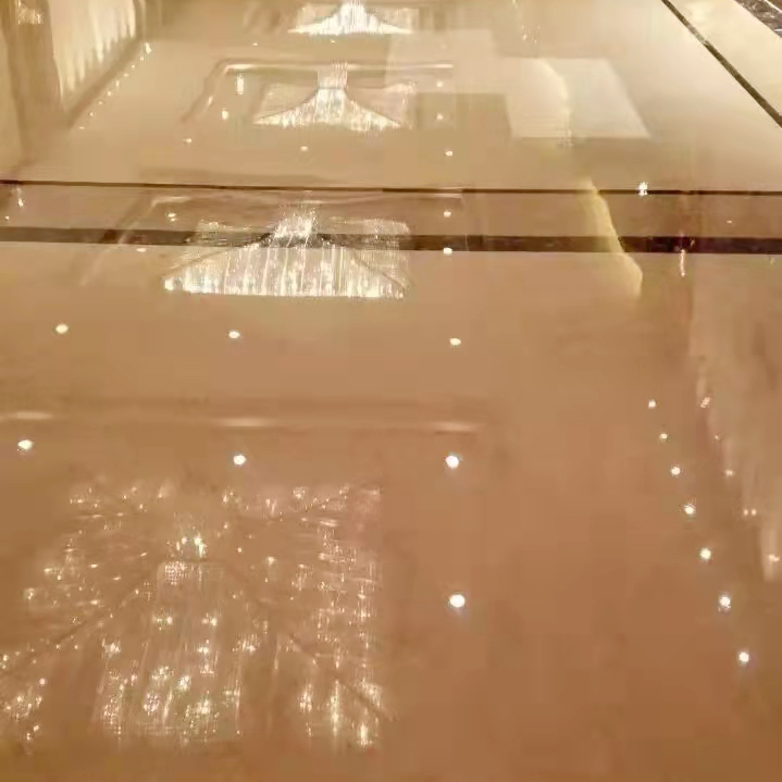 結晶拋光:將DL13增厚加光劑噴灑于地面用0#鋼絲墊或白墊少量多次拋干,地面即光亮透潤、更有厚度感;